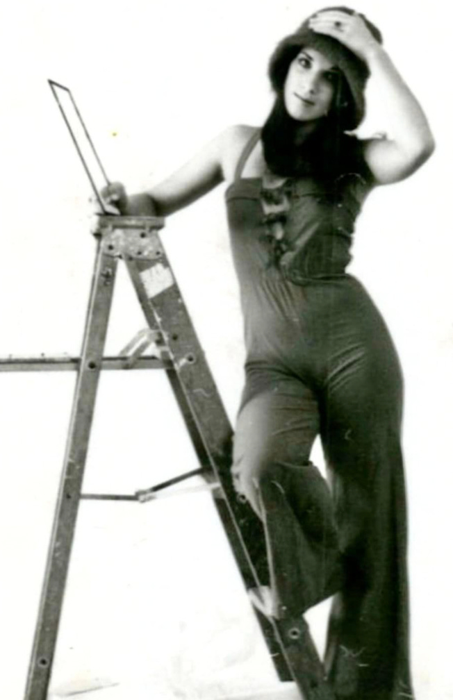And this jumpsuit she wore in Los Angeles in 1978 has a tie-front detail reminiscent of this stunning jumpsuit that Inspirit Vintage snagged from Female Hysteria Vintage recently featured in Mildew Magazine.